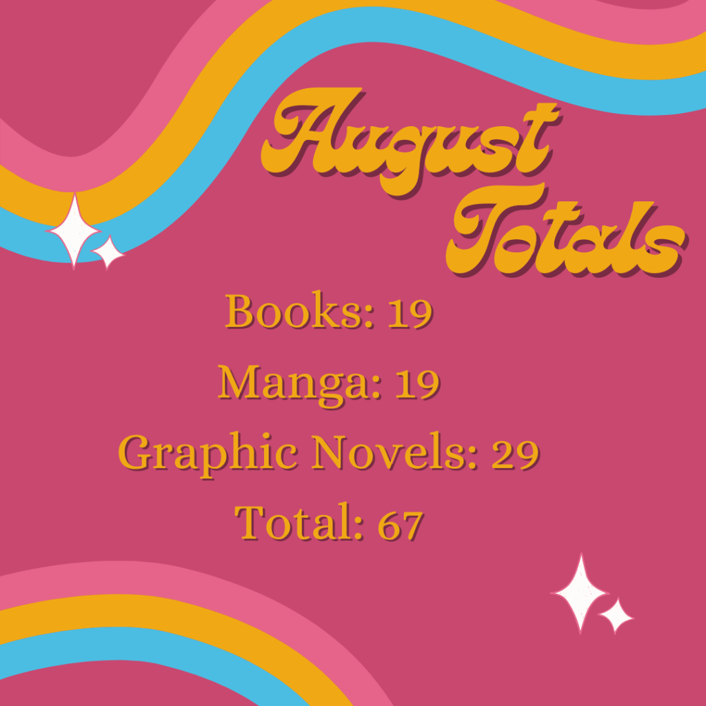 August was a really fun reading month. I got to read a bunch of really great books and spend a lot of time walking my new dog. I’ve really been enjoying listening to audiobooks while I’m walking her. If you have any suggestions, I’m always looking for good audiobook narrators! See you guys next month!