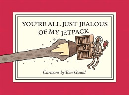 Up next, we have a book that came out this week, so you can go read it now! It’s called You’re All Just Jealous of My Jetpack by Tom Gauld. This was released on August 5th, so just a few days ago. It was a quick read because it was only 160 pages, and each page is a single comic. This is the third book of Mr. Gauld’s that I’ve read, and I’m really loving them. The cartoons are easy to understand, so I don’t feel dumb, but they are still more complicated than, say, Garfield. So I do feel a tiny bit superior when I’m reading them. Overall, this is one of my favorites from this author. (I have read another book from this author, but it’s not coming out until October, so you’ll have to wait to get my opinion on that one.) The comics in this are fantastic, and I just loved them. There are a few of them that if they sold prints of it, I would 100% be putting up in my house. If you’re looking for a fun read, I would highly suggest checking this out.